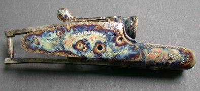 Nicht nur Jagdrepetierer lassen sich durch eine Bunthärtung verschönern, sondern auch Blockbüchsen und Kipplaufwaffen können mit dieser Art der Oberflächenveredelung nach Kundenwunsch aufgewertet und originalgetreu restauriert werden.