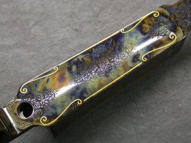 Der Gestaltungsmöglichkeiten sind hierzu keine Grenzen gesetzt. So kann man neuwertige runde oder achtkantige Läufe mit heutzutage üblichen Jagdkalibern einbauen. Auch die Schaftformen- und Maße können dem Schützen individuell angepasst werden. Zur Veredelung lässt sich eine schöne Ornamentikgravur oder Edelmetalleinlagen gut mit einem buntgehärteten Finish verbinden (Bilder 9+10).