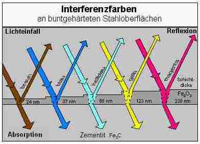 Bunthärten ist aber keinesfalls ein Ergebnis von "Voodoozauber" oder "Hexerei", womit es Nichtfachleute gerne assoziieren. Härtetechnisch betrachtet handelt es sich dabei um ein gezieltes Zementieren der äußeren Randzone ferrometallischer Werkstoffe. Durch das anschließende Abschrecken im Direkthärteverfahren mit dem sauerstoffreduzierenden Kohlungsgranulat erfolgt das Oxidieren der Oberfläche unter Ausbildung von nanometerdünnen Interferenzschichten. Hierbei spielen verschiedene Parameter eine entscheidende Rolle, deren Einhaltung in möglichst engen Toleranzen das Ergebnis wesentlich beeinflussen. Somit bilden die Härtetemperatur, die Haltezeit und die Zusammensetzung des Kohlungsgranulates in Abstimmung mit dem Stahlwerkstoff die Grundlage für die zu erzielenden Eigenschaften, wie Oberflächenhärte und Aufkohlungstiefe. Die chemische Zusammensetzung des Abschreckwassers und dessen Temperatur wirken sich direkt auf die Farben und den Grad des Verzuges aus.
